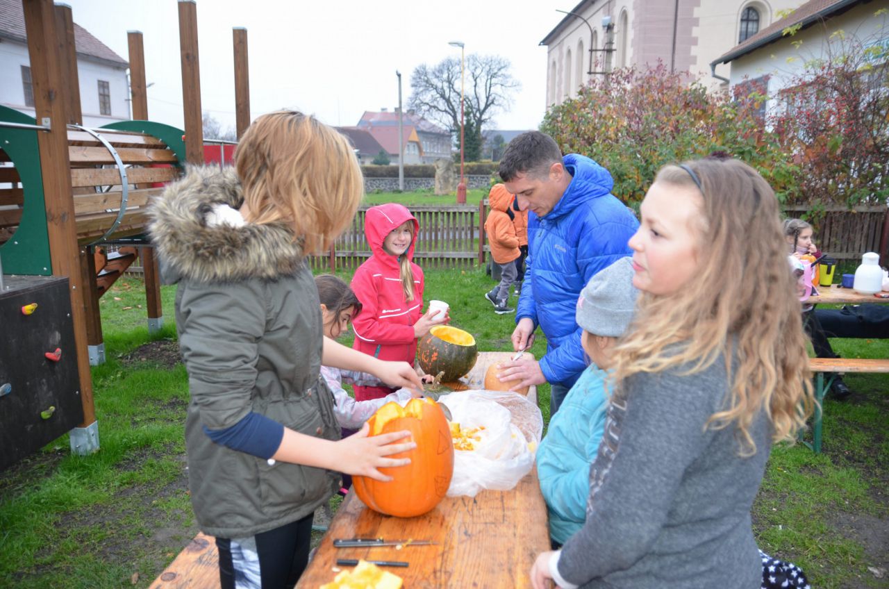 Příjemné odpoledne sice deštivé, ale zasoutěžili jsme si o nejkrásnější dýni. V akci byli dýně, nožíky, buřty a něco dobrého na zahřátí.