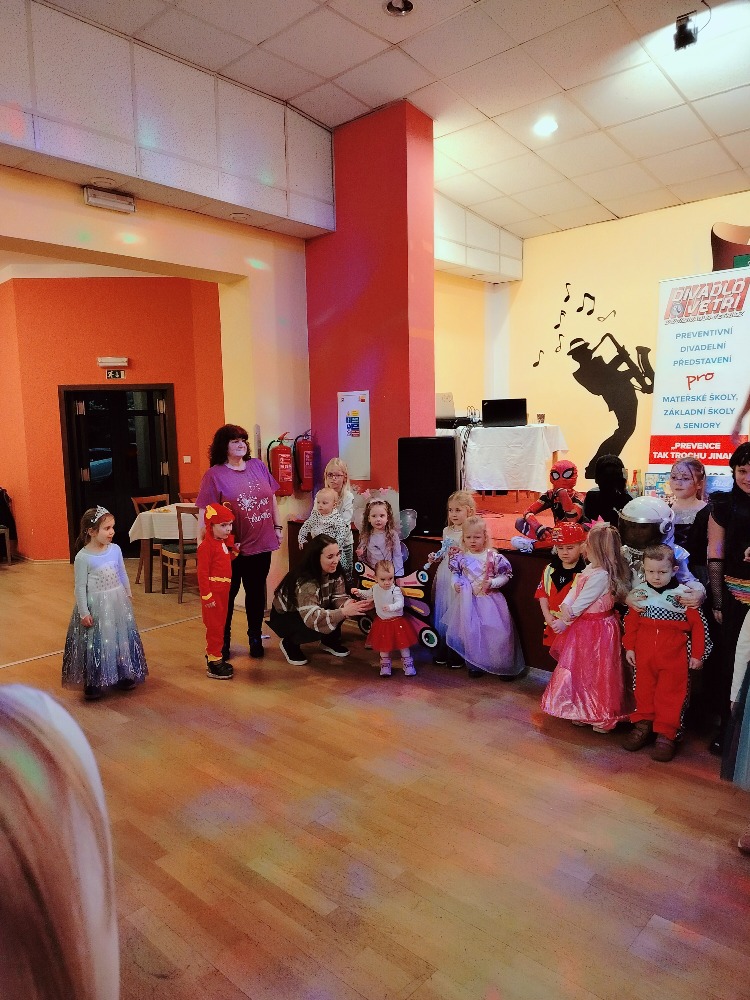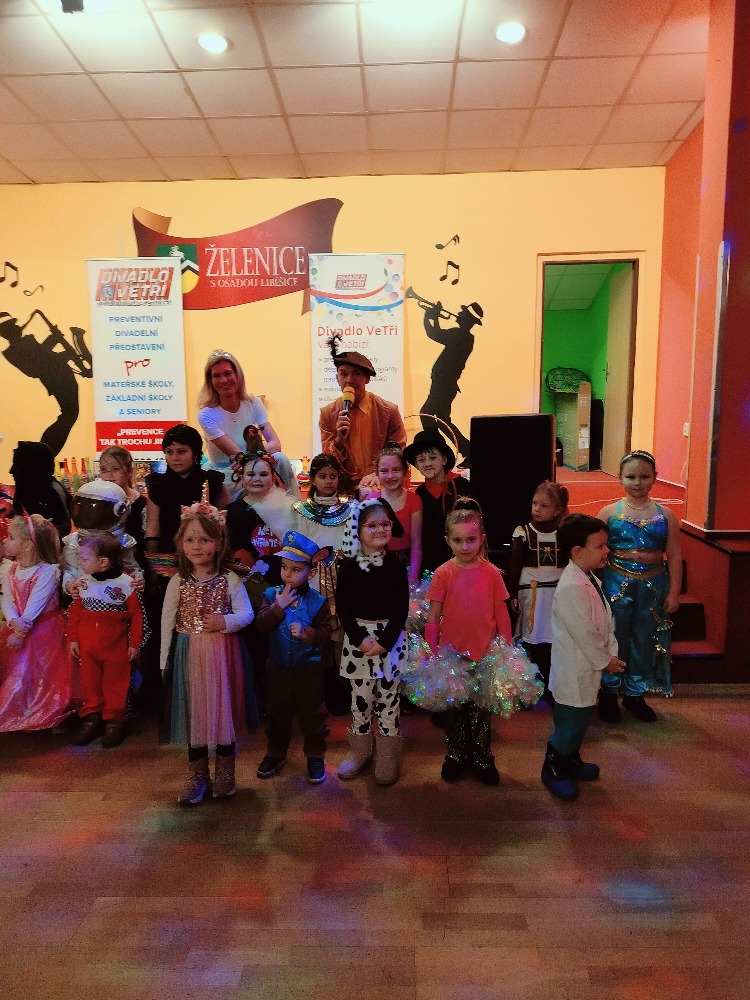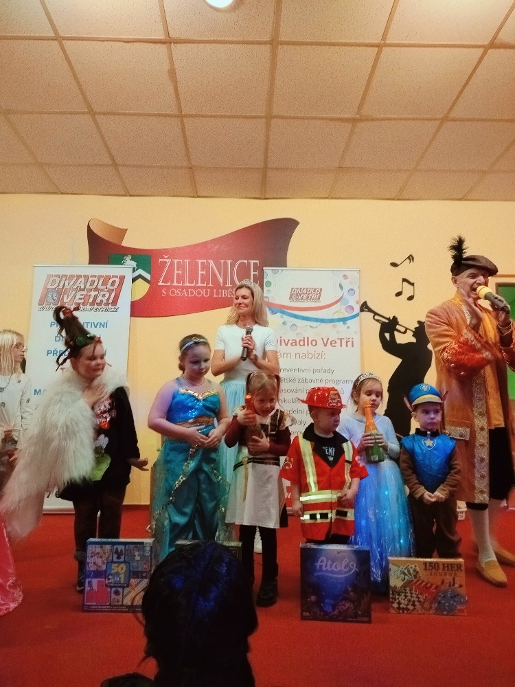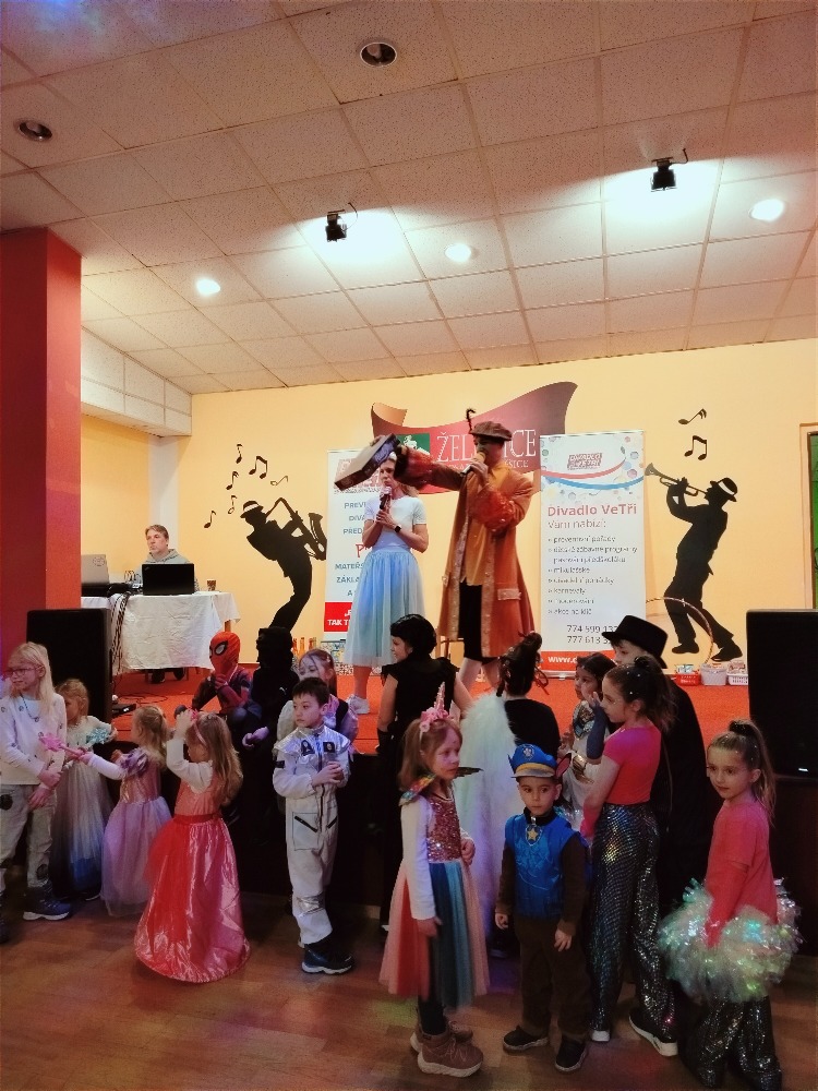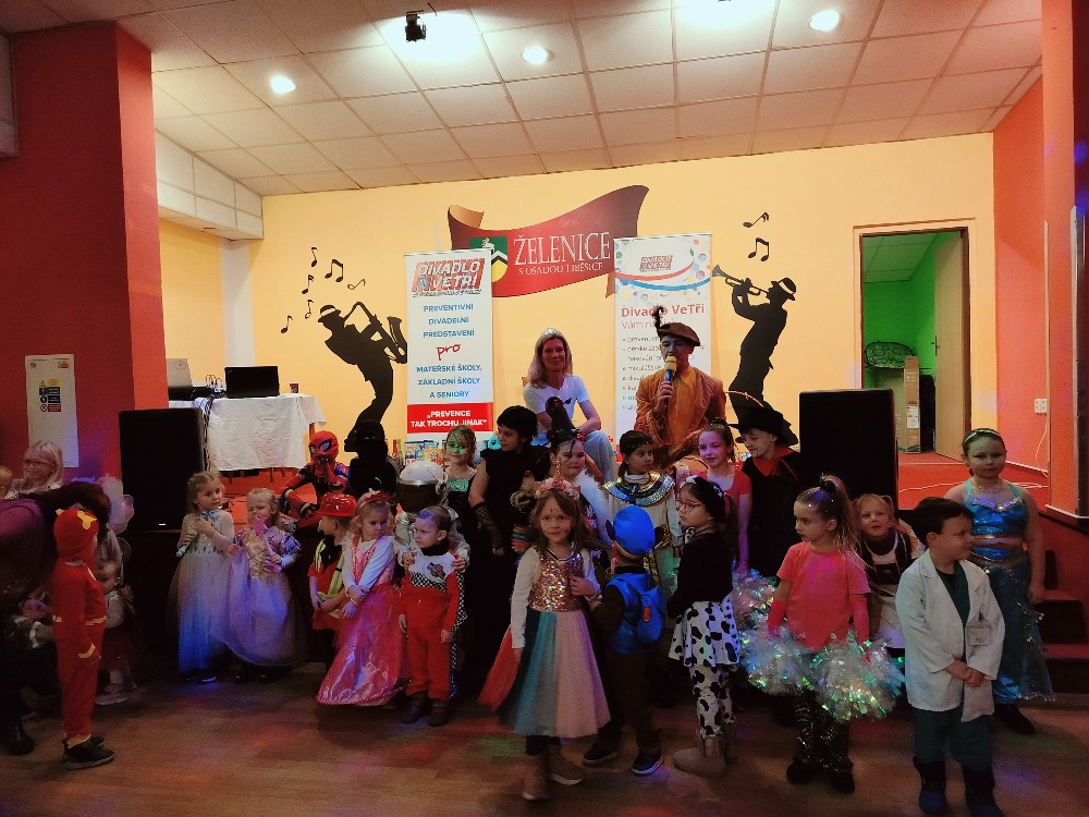 Odpoledne plné zábavy, tancování se soutěží o nejhezcí masky. Program zajistilo Divadlo Ve Tři.