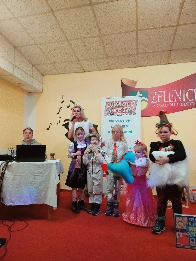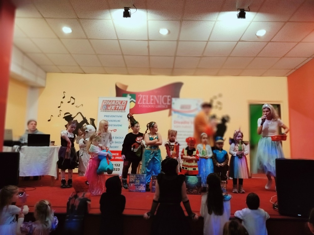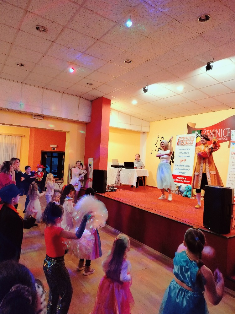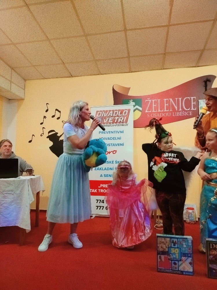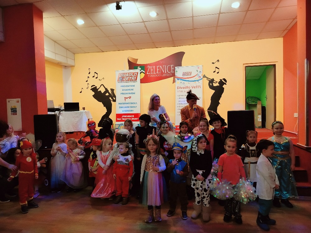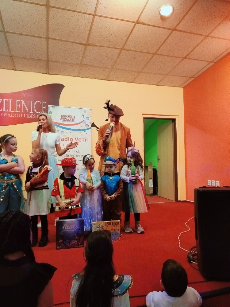 Odpoledne plné zábavy, tancování se soutěží o nejhezcí masky. Program zajistilo Divadlo Ve Tři.
