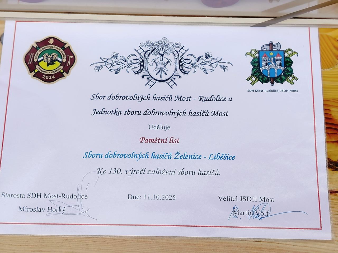 Významný den pro Sbor dobrovolných hasičů Želenice a Liběšice. 11.10.2025