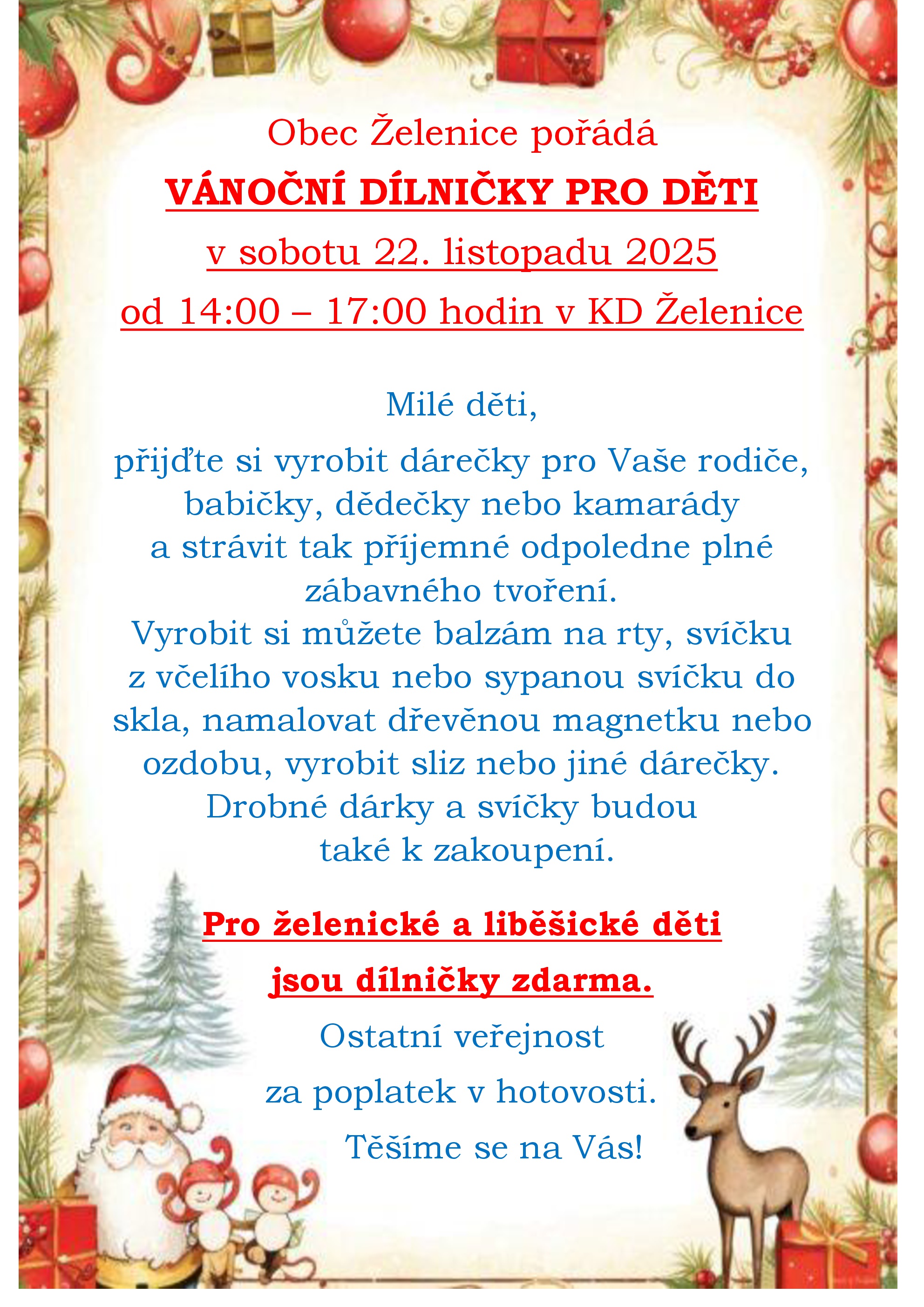Dílničky pro děti, kde si mohou vytvořit drobné dárky pro své rodiče nebo kamarády.